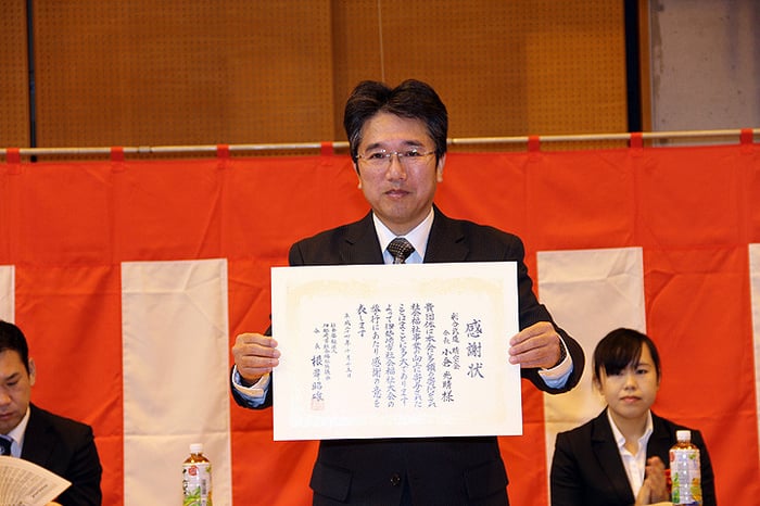 この感謝状は、私個人で頂いたものでは無く皆さんと一緒に頂いたものと思っています。ありがとうございました。